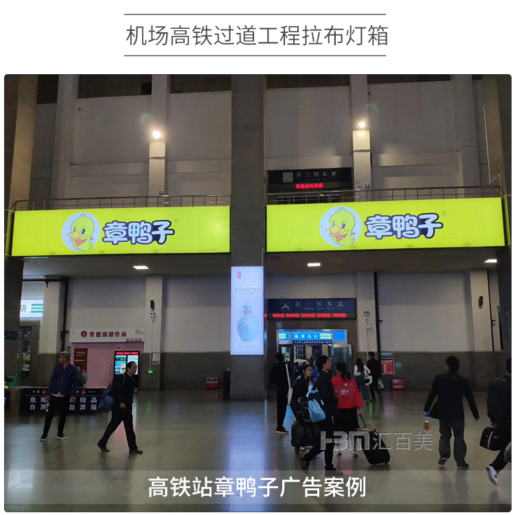 產(chǎn)品簡(jiǎn)介:高鐵站/機(jī)場(chǎng)過道的室內(nèi)廣告燈箱是一道亮麗的風(fēng)景線,那一排排的亮眼的燈箱安裝在過道或墻上,以大型、顯眼、亮麗、高效的方式將廣告植入到每一位過往的旅客中,提升廣告效益!...