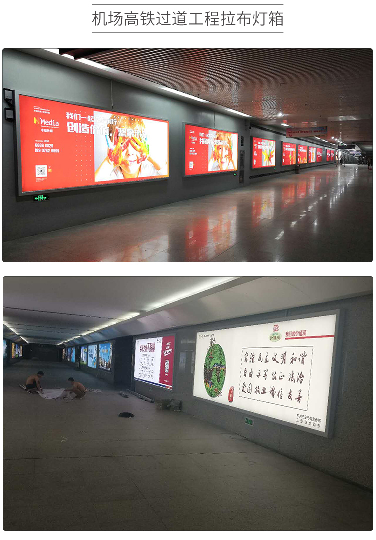 產(chǎn)品簡介:機場過道的室內廣告燈箱其實是亮眼的,那一排排的燈箱安裝在過道或墻上,以大型、顯眼、亮麗、高效的方式將廣告植入每一位過往的旅客.我司提供大型工程拉布燈箱解決方案......