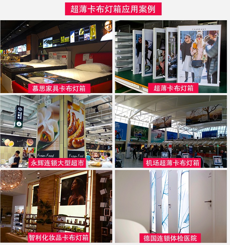 產(chǎn)品簡(jiǎn)介:6分超薄卡布燈箱,采用升級(jí)款60mm卡布鋁型材,安裝更方便,采用漫反射LED燈搭配熱轉(zhuǎn)印畫面,將廣告畫面還原設(shè)計(jì)師最初的設(shè)計(jì)元素,讓消費(fèi)者過(guò)目不忘,從而達(dá)到真實(shí)的宣傳目的。...