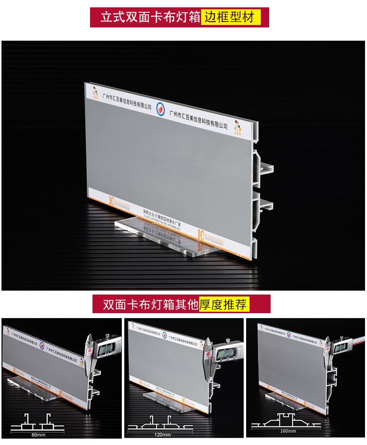 產(chǎn)品簡(jiǎn)介:160mm雙面卡布燈箱,燈箱邊框采用加強(qiáng)壁厚設(shè)計(jì),大尺寸燈箱更穩(wěn)固不易變形,可選用大功率側(cè)光源或雙面網(wǎng)格燈,雙面展示廣告,廣告效益擴(kuò)大化,采用嵌入式換畫(huà),更換畫(huà)面更方便!...
