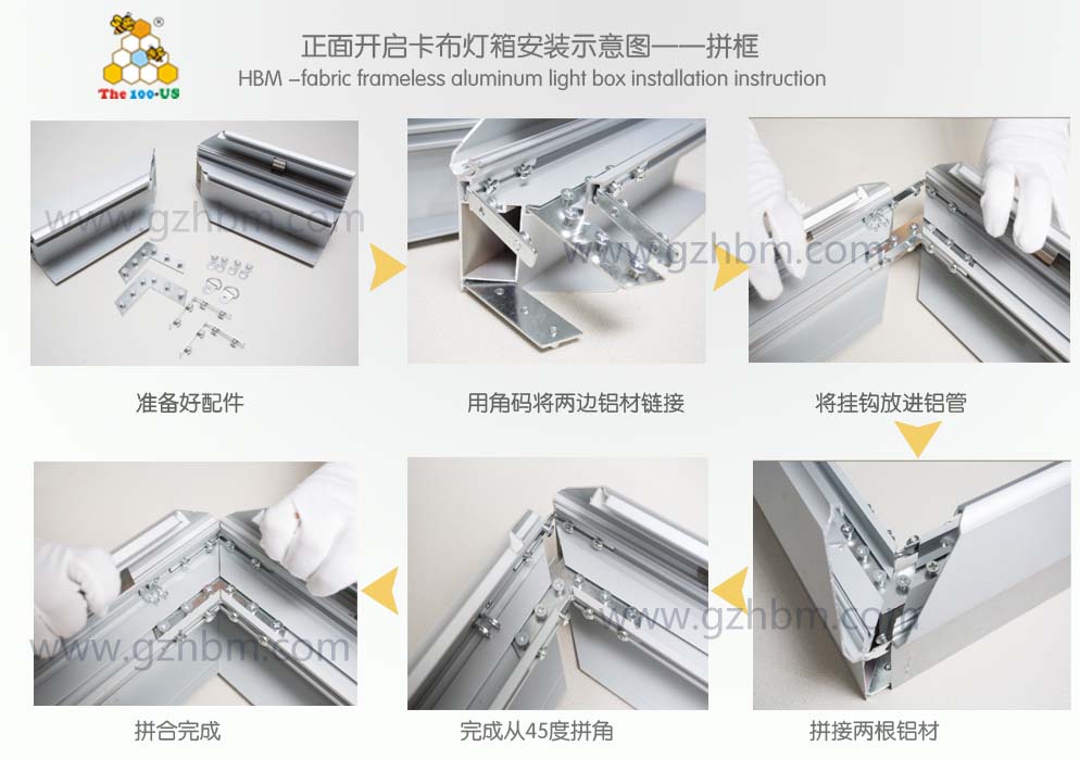 由于拉布燈箱比較大,重量輕,所以匯百美拉布燈箱廠家會(huì)建議客戶拆卸式包裝運(yùn)輸,也就是將鋁材、配件以及畫布分開打包運(yùn)輸,這樣一來(lái)可以大大地減少運(yùn)輸費(fèi)用,二來(lái)可以避免運(yùn)輸過(guò)程中造成損壞,最后還是因?yàn)榉珠_后好搬運(yùn),利于安裝,下面我們具體講一下安裝拉布燈箱的工序: