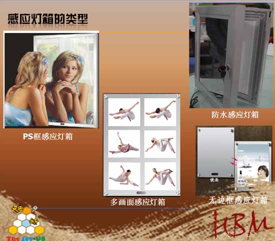 感應(yīng)燈箱可以根據(jù)性能分2大類,一類是不帶邊框的,這是我們說普通感應(yīng)燈箱,另一類是鋁材帶邊框的,這種是有防水功能的,我們叫防水式感應(yīng)燈箱。