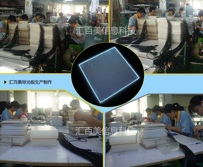 導光板是利用光學級的亞克力/PC板材,然后用具有極高反射率且不吸光的高科技材料,在光學級的亞克力板材底面用UV網(wǎng)版印刷技術印上導光點。利用光學級亞克力板材吸取從燈發(fā)出來的光在光學級亞克力板材表面的停留,當光線射到各個導光點時,反射光會往各個角度擴散,然后破壞反射條件由導光板正面射出。通過各種疏密、大小不一的導光點,可使導光板均勻發(fā)光,從而提高光的均勻度和光效率。
