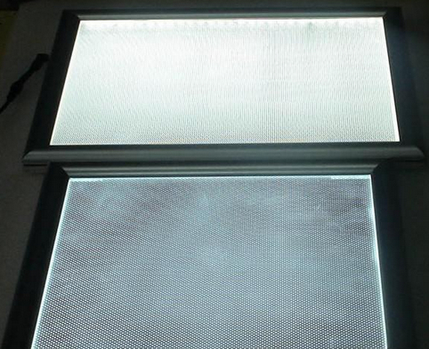 超薄燈箱散光原理:主要借助導(dǎo)光板,其利用射出成型的方法將丙烯壓制成表面光滑的板塊,然后在亞克力平板上用不吸光的高反射率材料,在板底面用網(wǎng)版印刷印上圓形或方形的擴(kuò)散點(diǎn),以此來擴(kuò)散光線。當(dāng)光線射到擴(kuò)散點(diǎn)時(shí),光會(huì)往各個(gè)方向反射,然后破壞反射條件由導(dǎo)光板正面射出。為使均勻發(fā)光,必須利用各種疏密、大小不一的擴(kuò)散點(diǎn)。反射板在導(dǎo)光板中的用途在于將底面露出的光反射回導(dǎo)光板中,以此來提高光的使用以達(dá)到增加亮度。