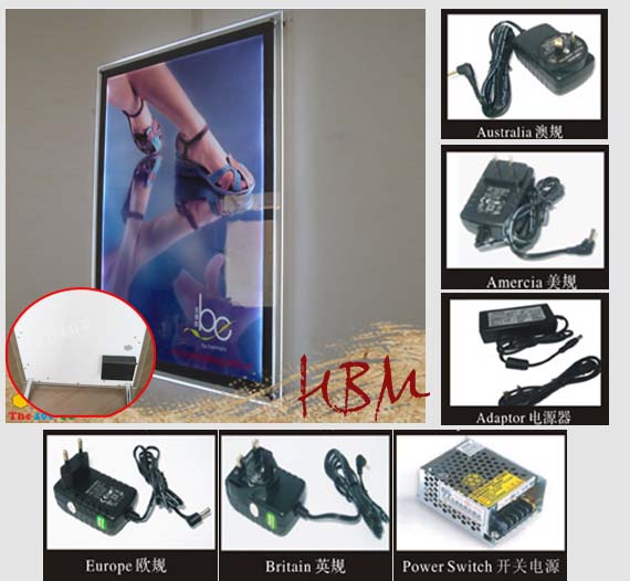 燈箱的安裝場所很多,匯百美品牌超薄燈箱標準配置是一個燈箱配一個電源器,電源器的類型可以根據(jù)客戶的要求配置:歐規(guī)、美規(guī),澳規(guī),國標,英規(guī)以及變壓器等幾種電源器的,如果客戶要求的燈箱(類似餐廳價格牌類)需要幾個一起接通一個開關(guān)的可以配置變壓器,這樣不用每個單獨燈箱都配一個電源器,方便些操作.