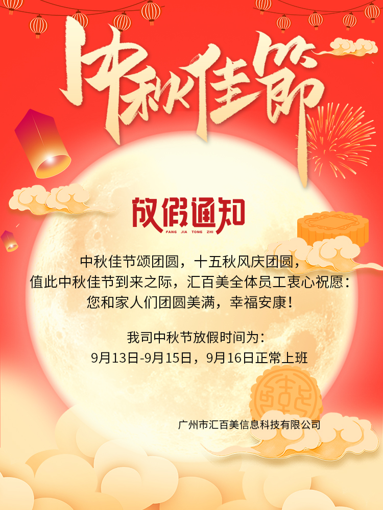 海上生明月,天涯共此時!又到一年中秋佳節(jié),匯百美全體同仁在此祝大家中秋快樂!闔家幸福!圓圓滿滿!