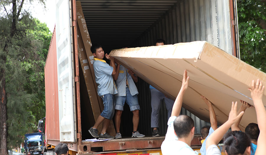 除了小激動之外,匯百美同事們還是有點忐忑,畢竟廣州這一個多星期都連續(xù)下雨,今天早上也不例外,一大早也是灰蒙蒙的天空,眼看就要下雨的節(jié)奏,也管不上三七二十一了,匯百美同事們擼起袖子就往外搬(因為車子比較長,工業(yè)區(qū)門口修路,進不來廠房,這也給出貨增加了難度),經(jīng)過3小時的搬運,終于完成任務!可是還沒來得及撤回公司,就開始嘩啦啦啦的下起大雨了,這雨水就像是忍了許久一樣的一下就傾盆而下,同事們都成了“落湯雞”,不過拉布燈箱整批貨倒是安全地住進集裝箱里啦,就等待著享受漂洋過海的旅程吧!