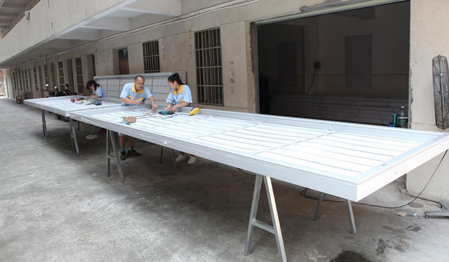 拉布燈箱成品發(fā)貨對買家來說就是很方便,收到貨安裝固定就可以了,這對工程方來說節(jié)省了很多人力物力的,但是對于我們工廠來說,組裝工序可不是只是多一點點哦!從切45°斜角——安裝配件——安裝燈條——拉畫面——包裝等都是大工程,需要幾個人的配合,別的不說,工廠場地不夠都完成不了組裝這個工序,然后出貨上車都要幾個人來搬運的,所以組裝成品不單單是技術活,還是一項特別細心和耗時間的活,平時沒有組裝經(jīng)驗的師父來做組裝,時間成本可能要多耗時2-3倍呢!所以國外的合作客戶寧愿多出運費,也不愿意自已組裝就是這個原因,因為我們組裝好可以幫工程方節(jié)省更多的費用成本.