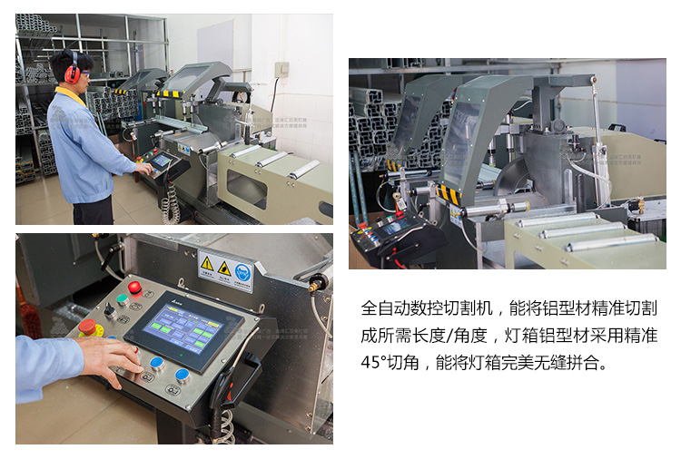 別說我家型材價(jià)格貴,我們對工藝的追求是行業(yè)無可比擬的!工藝精湛超群,就連一個(gè)切角我們都精益求精,可以手動(dòng)切割的我們卻選擇精密機(jī)械,不為什么,只因我們只做安全的廣告,不止為客戶的切身利益考慮,更為客戶解除安全隱患,做完全后顧無憂的廣告!為此,我們再次引進(jìn)大型全自動(dòng)數(shù)控切割機(jī),擺臂式雙頭鋸切割,能精準(zhǔn)切割45°角、90°直角以及其他角度的鋁材切角,滿足不同項(xiàng)目工程對廣告拉布燈箱形狀的要求。