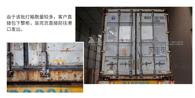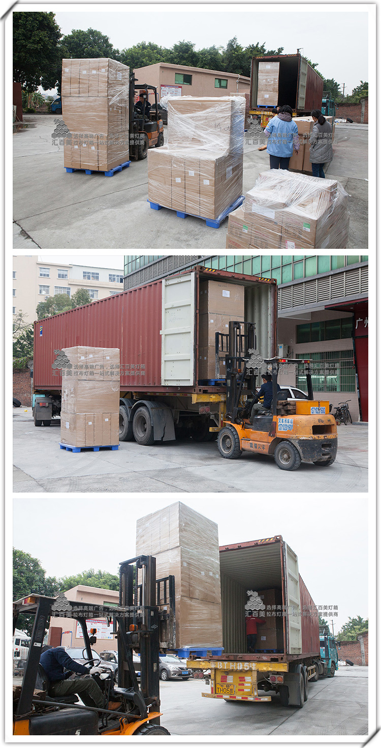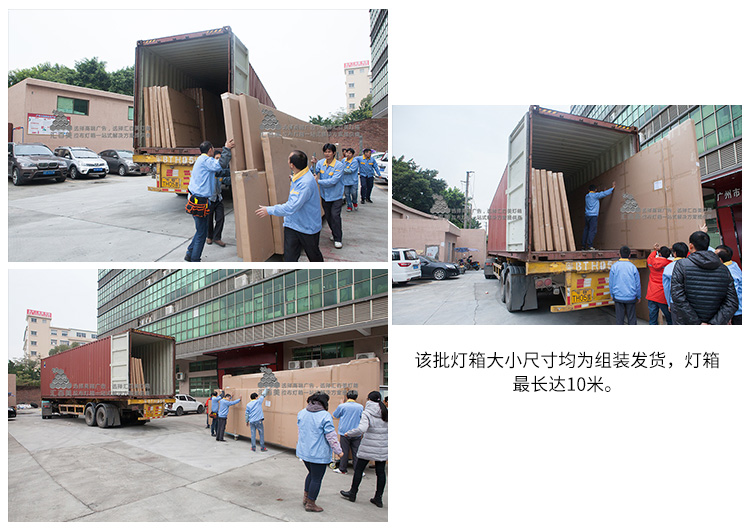 昨日,我們成功將第二批40尺柜發(fā)往卡塔爾的燈箱組裝裝柜完成踏上船航.....這幾天的連續(xù)雨水,讓出貨的進(jìn)程增加了難度,因?yàn)檫@批燈箱都是成品發(fā)貨,小的一米多,大的十幾米,還好天公作美,昨天早上,雨過(guò)天晴,下午裝柜時(shí),地板都已經(jīng)干了,全體員工一鼓作氣,忙到晚上7點(diǎn)多,成功將貨物裝上柜發(fā)往海外。