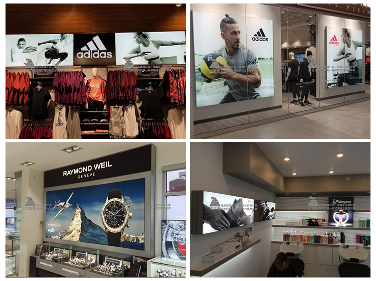 越來(lái)越多的卡布燈箱被應(yīng)用在店面裝飾上,不僅限于大型的拉布燈箱,2018年,我們承接的工程項(xiàng)目中,更多的是拉布燈箱成品(偏小尺寸)被應(yīng)用在品牌店面裝飾上面,包括珠寶、包包、名表、化妝品等各種奢侈品牌以及家具家居室內(nèi)店面裝飾,都在更換新型的超薄卡布燈箱廣告,那效果真的是無(wú)話可說(shuō)!