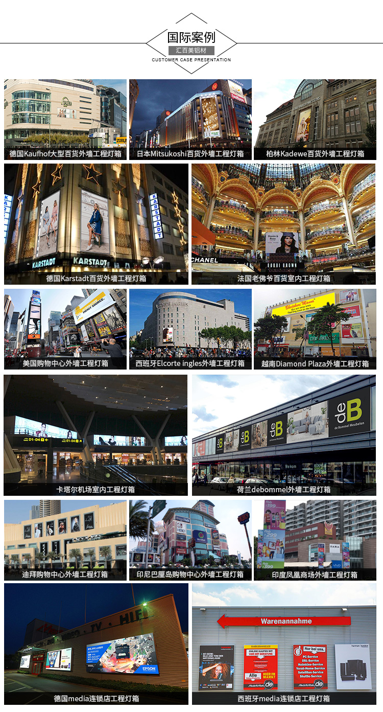 匯百美十年來(lái)專注于為客戶提供工程拉布燈箱一站式服務(wù),提供包括燈箱鋁型材、LED燈、廣告畫(huà)面、電源器的一站式采購(gòu)。