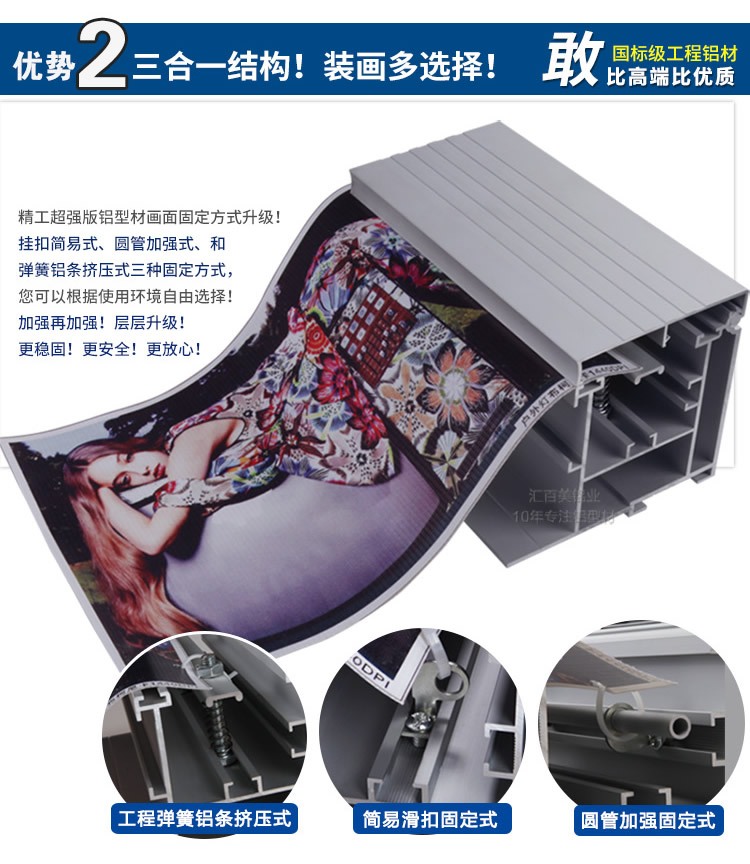 工程款鋁型材首發(fā)至今一個多月,銷量已經(jīng)達(dá)到上萬米!而且獲得一直好評!厚實穩(wěn)重,不變形,30平方米的以上的戶外廣告多例,主要面對的客戶群的體是大型企業(yè)以及市政工程,制作的大型綜合體廣告,在商業(yè)、高鐵、展覽會、機(jī)場等使用場所。