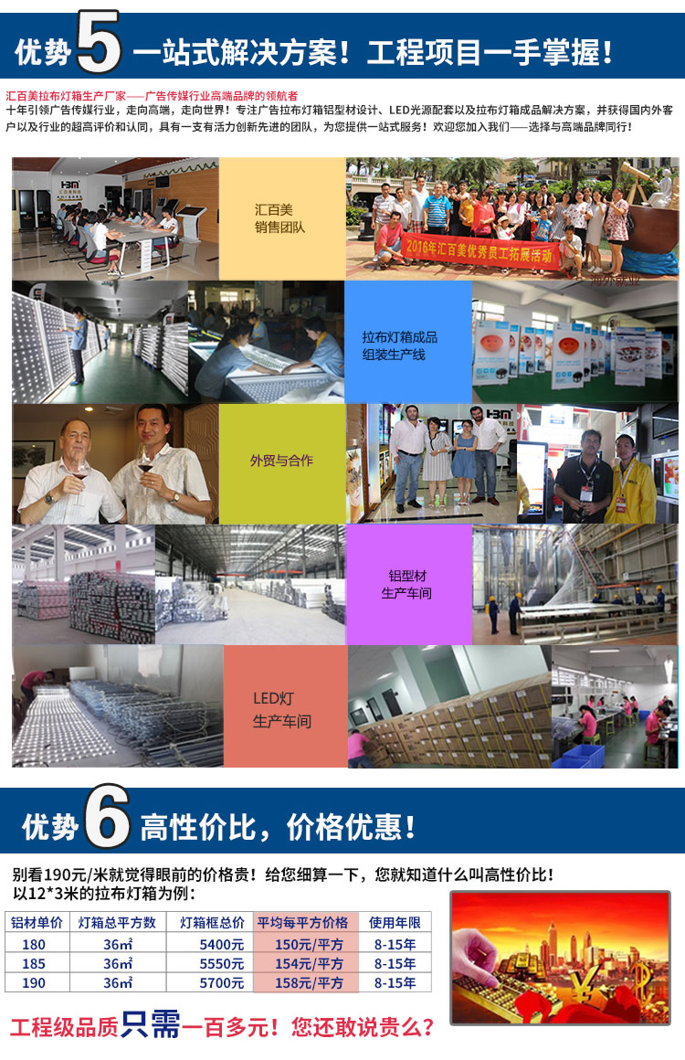 如此以“薄”補(bǔ)數(shù),肯定是不行的!特別是對大于20平方米以上的大型廣告拉布燈箱,更是不行,如此這般,眼前投入是少,殊不知?質(zhì)量的問題導(dǎo)致更多繁瑣的后期維護(hù)問題,而且安全卻是一個不可彌補(bǔ)的大問題!所以制作大型拉布燈箱、戶外拉布燈箱一定一定不能只看眼前利益,要追求長期投放和后期維護(hù)的問題.......所以,升級加強(qiáng)款3.3mm壁厚鋁型材來襲!